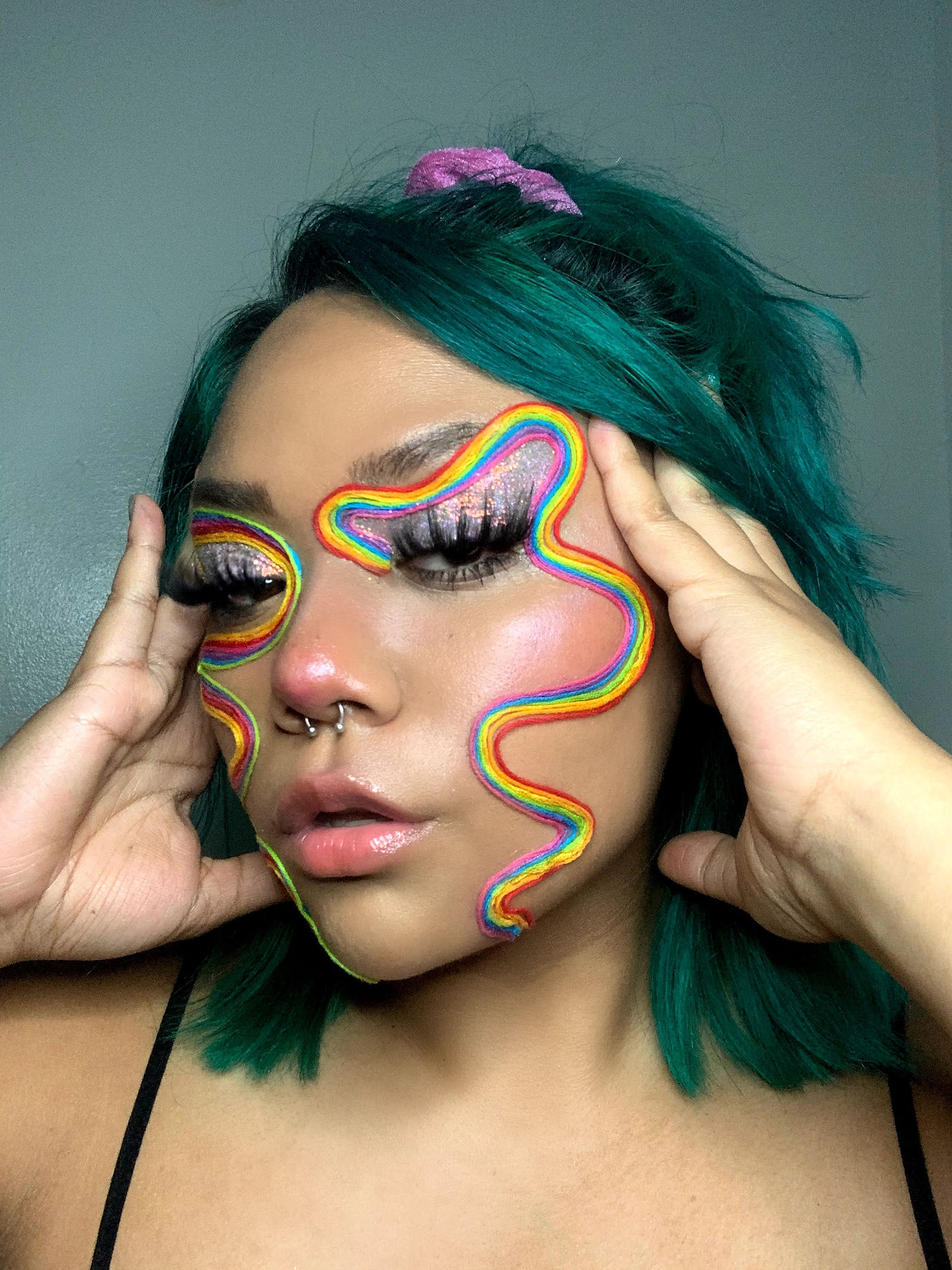 “I had previously used makeup to cover up my insecurities and try to fit a certain standard, but that bold graphic liner gave me a new sense of confidence and made me feel like a new person! As my confidence grew I stepped more and more out of my comfort zone with makeup and now I’m passionate about colorful and bold avant garde/editorial looks.”